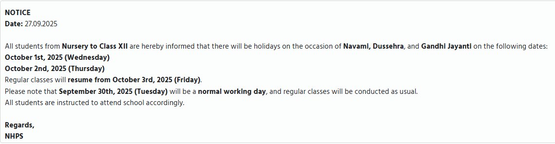 Notice for Navmi & Dussehra Holidays