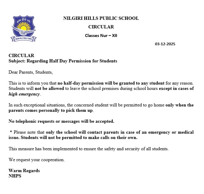 Regarding Half Day Permission For Students